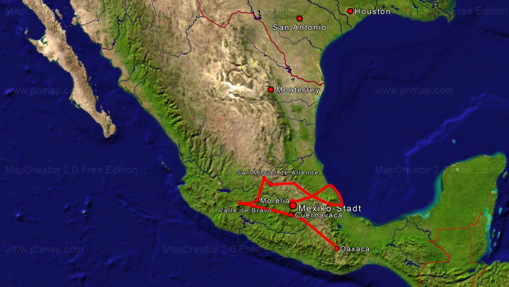Von Oaxaca-Stadt geht's über Bergketten auf 3.000 Meter hoch und dann steil kurvig runter zum Pazifik. Einige Tage später ist es eine flache, entspannte Tagesfahrt rüber zum Atlantik.